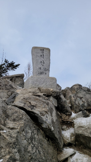 6. 명지산 정상 도착 13시 명지산 해발 1267M 약 명지산 정상까지 3시간 걸림